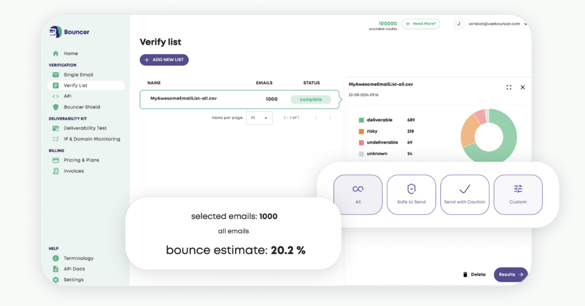 Bouncer is a secure email verification and deliverability platform offering real-time and bulk list validation, toxicity checks, and bounce prediction. It’s trusted by SMBs and enterprises alike.