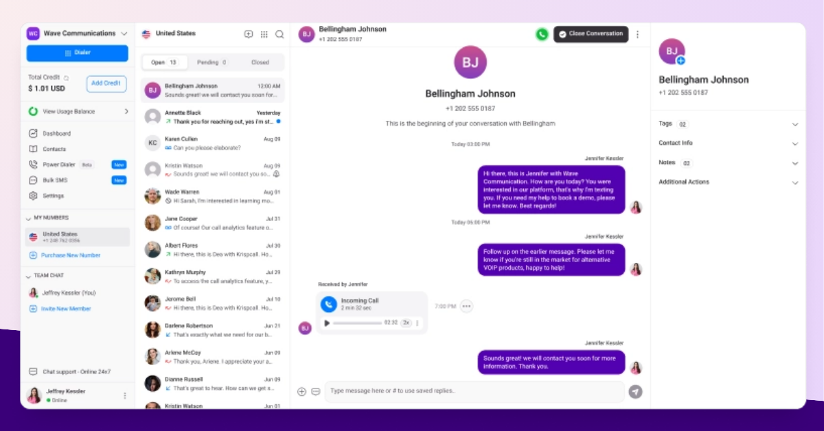 KrispCall is a modern VoIP solution offering local and global virtual numbers across 100+ countries, a unified callbox, SMS / MMS, IVR, CRM integrations, and AI-powered call features — all designed for today’s digital-first businesses.